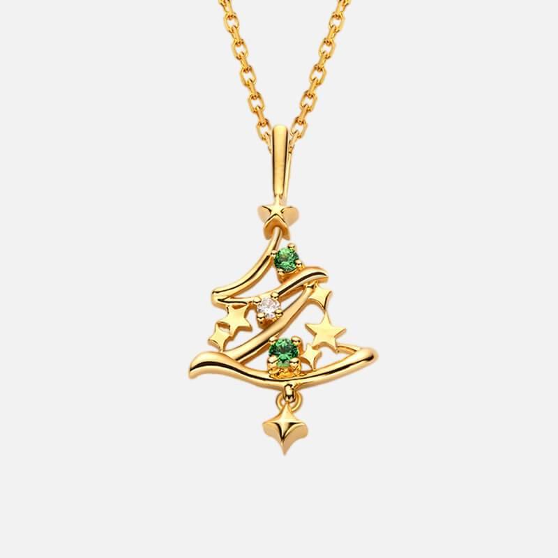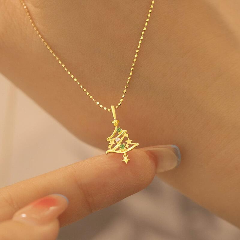 18K Gold Christmas Tree Necklace - Star
